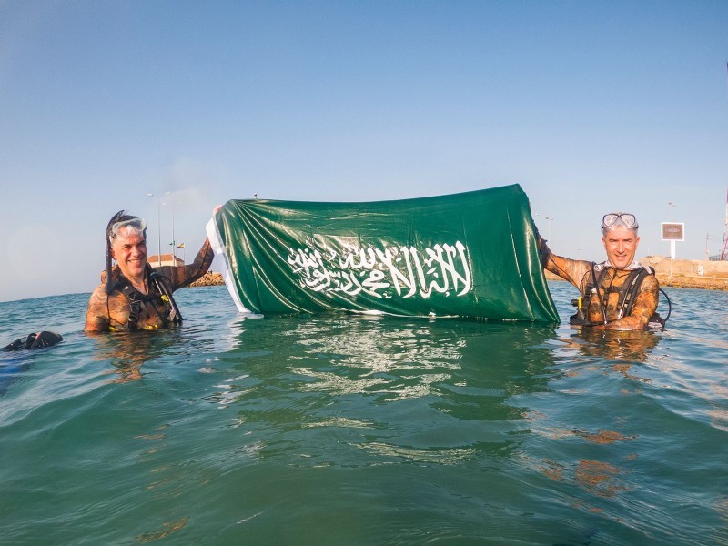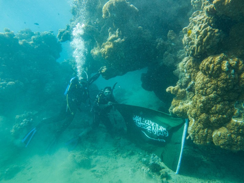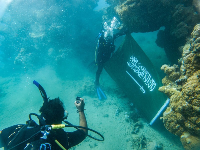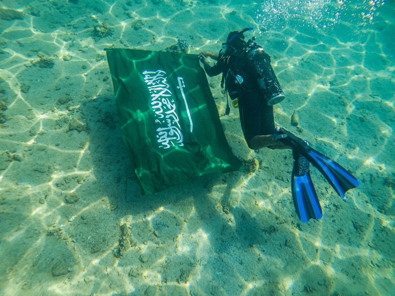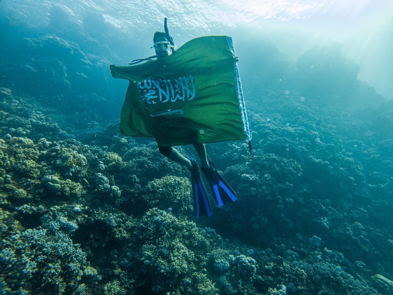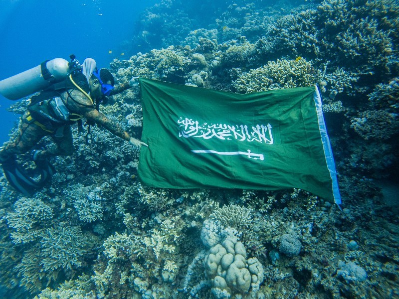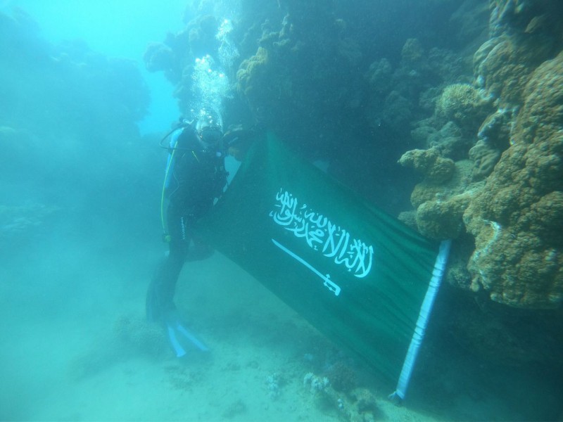 احتفى غواصو منطقة تبوك بمشاركة عدد من السياح الأجانب باليوم الوطني الـ91 من أعماق البحر الأحمر. وكانت عدسة «واس» وثقت هذه الاحتفالية بمنطقة زاعم بمحافظة الوجه.