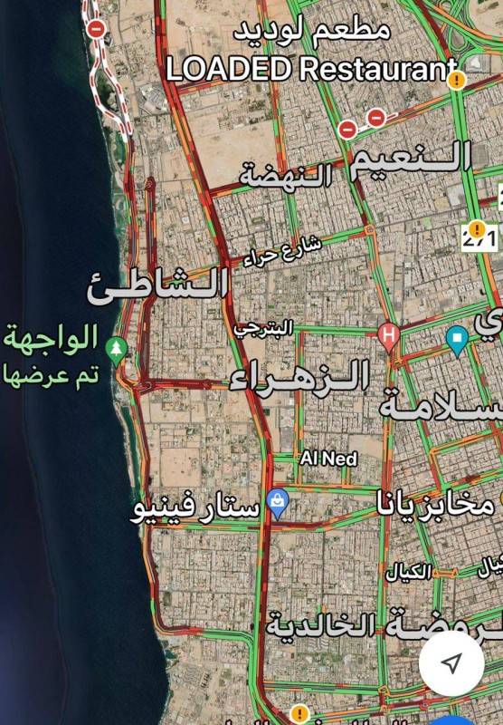 طرق حمراء وأخرى صفراء على خريطة الطرق، كثافة مرورية كبيرة في أرض الواقع شهدتها المحاور الرئيسية في المدينة الساحلية، التي غصت بالمركبات اليوم ليعاني عشرات المحتفلين بيوم الوطن للوصول إلى وجهاتهم دون حلول جذرية لإنهاء ازدحام المركبات في المواسم وعند الاحتفالات.