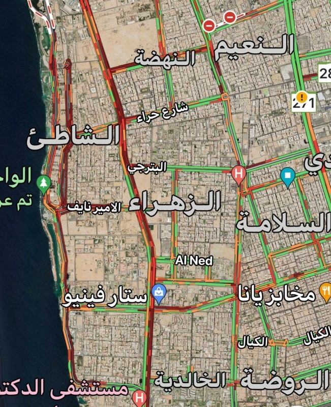«عكاظ» رصدت عددا من الطرق التي تشهد كثافة مرورية في محاورها الرئيسية وهي؛ طريق التحلية (الأمير محمد بن عبدالعزيز)، طريق الملك عبدالعزيز، طريق فلسطين، طريق الأندلس، طريق الفلاح، طريق المطار، طريق حراء).