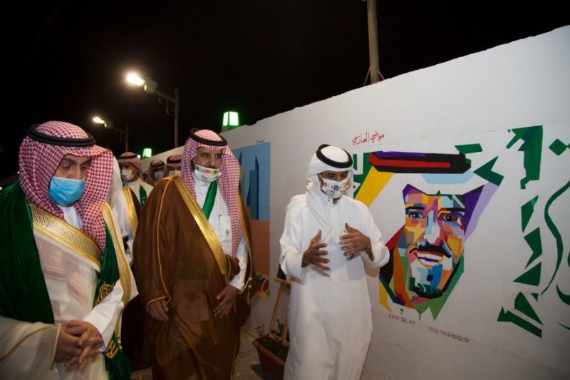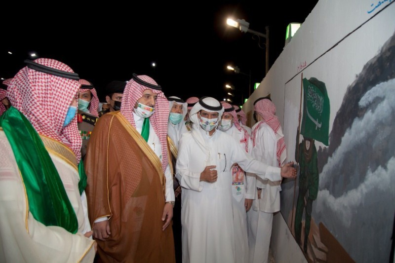 وتجول المحافظ ومرافقوه على الجدارية الوطنية التي نظمتها جمعية «جسفت القريات»، مستمعاً لشرح عنها وما تحتويه من صور وعبارات وطنية بهذه المناسبة الغالية، ثم تجول في أجنحة الأسر المنتجة التي تحتوي على 40 جناحا بالشراكة مع لجنة التنمية الاجتماعية الأهلية بالقريات، مطلعاً على عروض الأسر المنتجة والأسر الحرفية من المنتجات الغذائية والحرف اليدوية، ثم شاهد معرض الفنون التشكيلي، واستمع إلى القصائد الوطنية التي أعدت من الشعراء لهذه المناسبة.