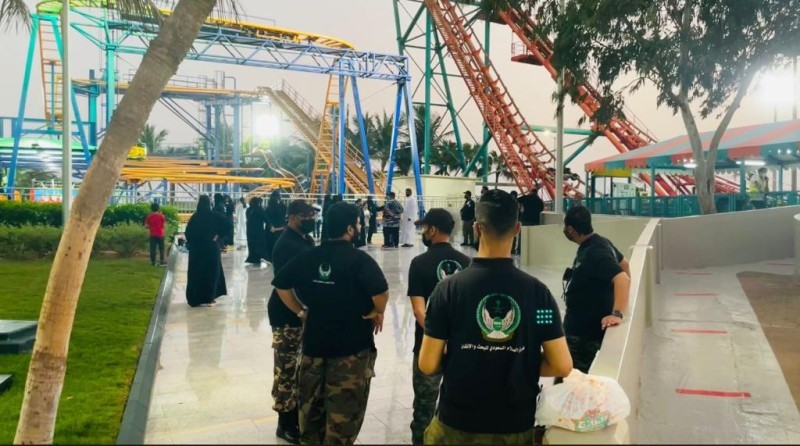 وتضمن البرنامج جزءا توعويا يختص بالإسعافات الأولية، والتعامل مع الحرائق الصغيرة. وفي الجانب الترفيهي، نسقت جمعية السلام للإغاثة والطوارئ مع إحدى المدن الترفيهية بجدة لاستقبال الأطفال وذويهم.