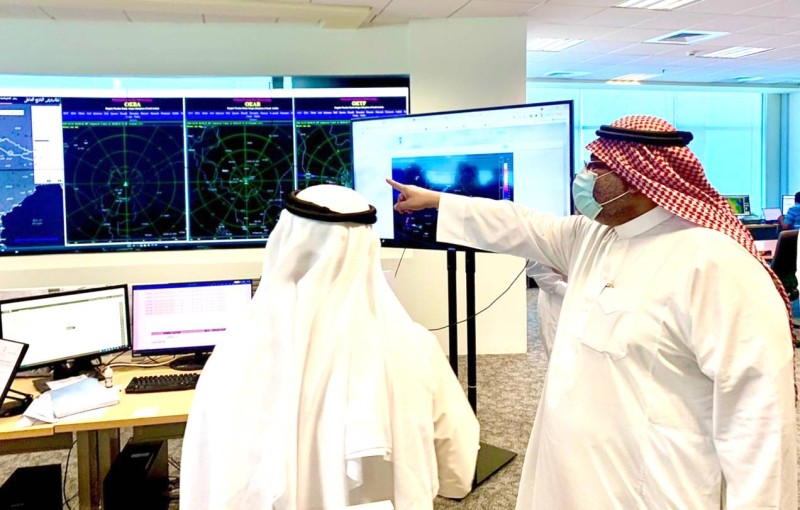 الرئيس التنفيذي للمركز الدكتور أيمن غلام يتابع مسار الحالة المطرية المحتملة. (الصورة من الأرصاد)