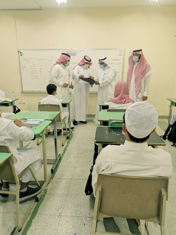 تفقد مساعد المدير العام للإشراف التربوي بوزارة التعليم هادي يحيى غروي صباح اليوم متوسطة ذي النورين في حي العنود بالطائف، وذلك للاطمئنان على سير العملية التعليمية والاطلاع على أبرز المنجزات والخطط الخاصة للمدرسة، يرافقه أثناء الزيارة مدير إدارة الإشراف التربوي بتعليم الطائف يوسف بن عبدالله الزهراني. واستمع إلى شرح من مدير المدرسة محمد بن عبدالرحمن الثبيتي عن سير العملية التعليمية في والإجراءات المتخذة لتطبيق التباعد والبروتكولات الصحية بين الطلاب.