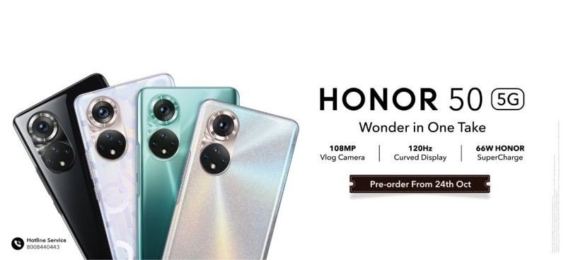 سيتوفر هاتف HONOR 50 بسعة 8GB+256GB مقابل 2499 ريالا وبسعة 6GB+128GB مقابل 2199 ريالا. سيبدأ الطلب المسبق للإصدار 8GB+256GB بداية من 24 أكتوبر، كما سيتوفر الإصدار الآخر للطلب المسبق في وقت لاحق.