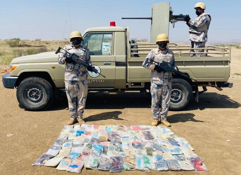 صرّح المتحدث باسم حرس الحدود العقيد مسفر القريني بأنه في إطار المتابعة الأمنية المستمرة للنشاطات الإجرامية التي تستهدف أمن المملكة وشبابها بالمخدرات، فقد تمكّنت الدوريات البرية في مناطق جازان وعسير ونجران، من إحباط محاولات تهريب 1.276 طن من الحشيش المخدر، و(66) طنًا و(464) كيلوغرامًا من مادة القات المخدر، والقبض على المتورطين في ذلك البالغ عددهم (150) متهمًا، منهم (47) مواطنًا، و(103) متهمين من مخالفي نظام أمن الحدود بينهم (89) من الجنسية الإثيوبية، و(10) من الجنسية اليمنية، و(3) من الجنسية الصومالية، ومتهم واحد من الجنسية الإرتيرية.