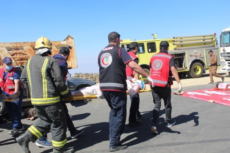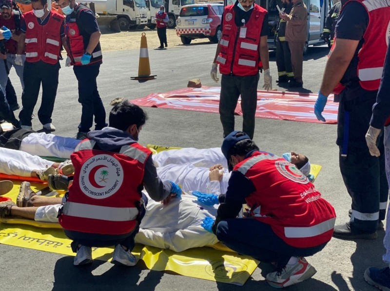 نفّذ فرع هيئة الهلال الأحمر السعودي في عسير، فرضية وهمية تمثلت في ورود بلاغ من أحد المواطنين لمركز العمليات 997 عن وقوع حادث تصادم بين شاحنة نقل و4 سيارات في النماص، وعلى الفور تم توجيه فرق إسعافية من الهلال الأحمر لمباشرة الحادث الذي نتجت عنه وفاتان و18 إصابة، حيث تم توجيه 6 فرق إسعافية مساندة، وعربة وحدة الإصابات المتعددة، وشاحنتي الكوارث مع شاحنة الصيانة المتنقلة، ومشاركة جهات حكومية أخرى بالمحافظة.