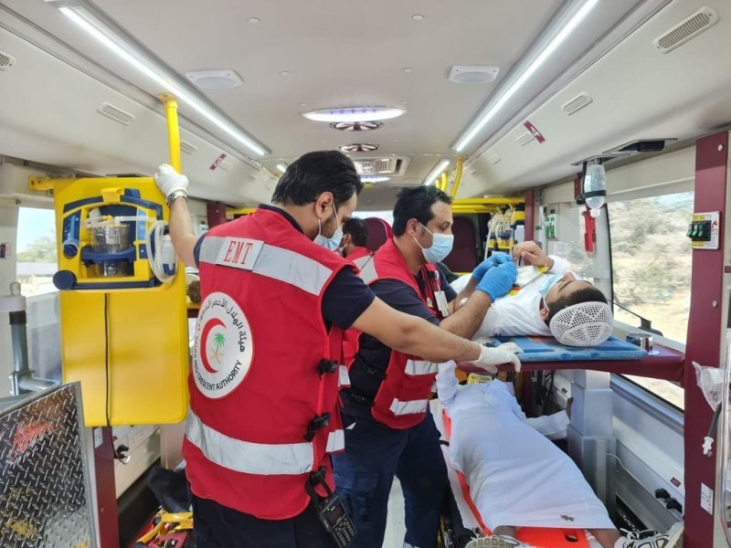 وأوضح المتحدث الإعلامي لفرع هيئة الهلال الأحمر في عسير أحمد الألمعي، أنه تم التعامل مع الحالات الإسعافية، ونقلها إلى مستشفى النماص العام، حيث نتج عن حادث التصادم، حالتا وفاة و5 إصابات خطيرة، و6 إصابات متوسطة، و7 إصابات مستقرة. وقال: الفرضية تأتي لرفع الجاهزية، والوقوف على حالة الاستعداد لدى الفرق الإسعافية والطبية بالمنطقة في حال وجود حوادث تتعدد فيها الإصابات لا قدر الله، وفق بروتوكول هيئة الهلال الأحمر السعودي.