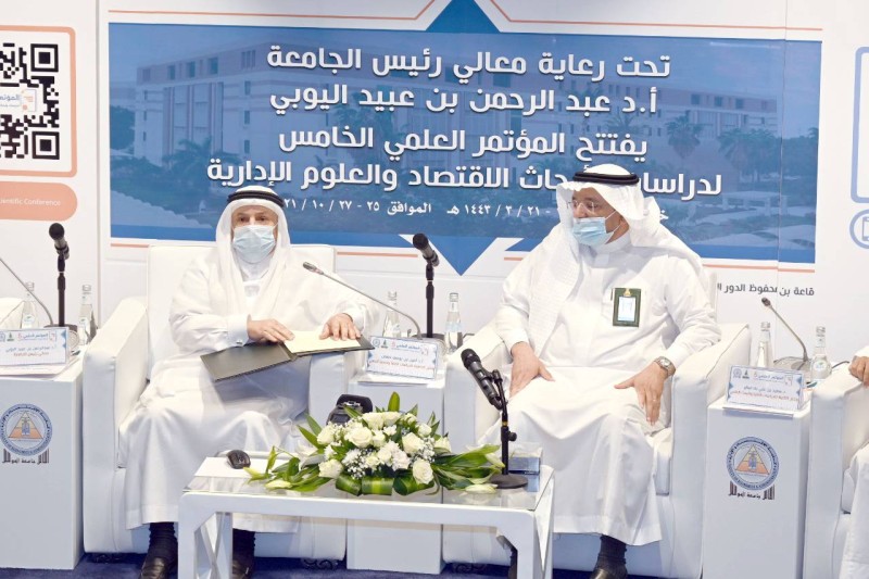 دشن رئيس جامعة الملك عبدالعزيز الدكتور عبدالرحمن اليوبي، المؤتمر العلمي الخامس لدراسة الأبحاث ودراسات الاقتصاد والعلوم الإدارية.