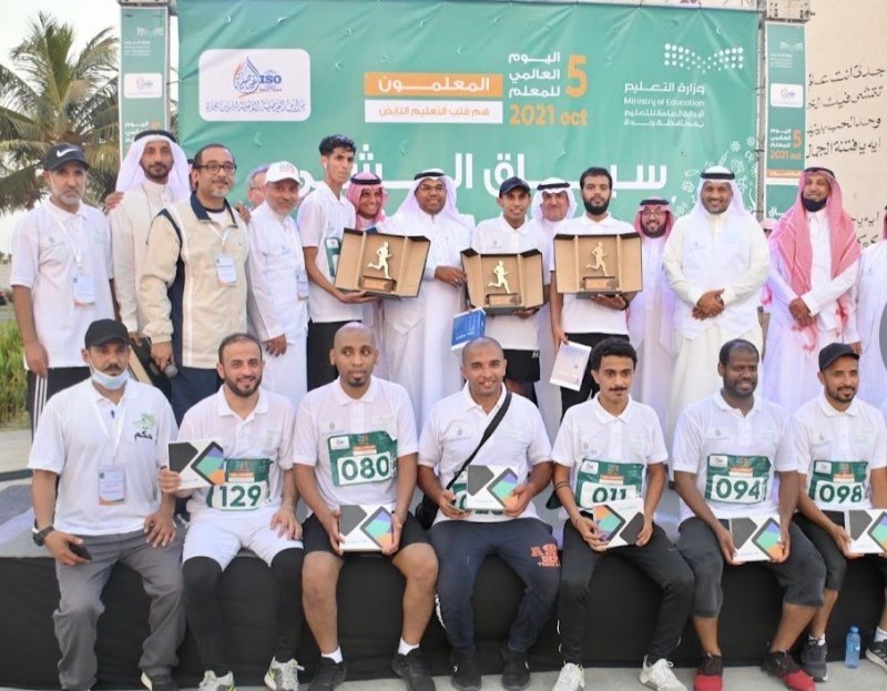 نيابة عن المدير العام للتعليم بجدة الدكتور سعد المسعودي، دشّن المساعد للشؤون المدرسية طواشي الكناني مساء أمس وبحضور مساعد مدير عام تعليم جدة للشؤون التعليمية الدكتور سعيد آل عاتق سباق المشي والذي نظمته إدارة تعليم جدة ممثّلةً في الشؤون المدرسية وذلك ضمن فعاليات الاحتفاء باليوم العالمي للمعلم تحت شعار «المعلمون قلب التعليم النابض» والذي أقيم بممشى الواجهة البحرية بجدة بمشاركة ٣٠٠ معلم من مدارس جدة حيث بلغت مسافة السباق ٤ كم.