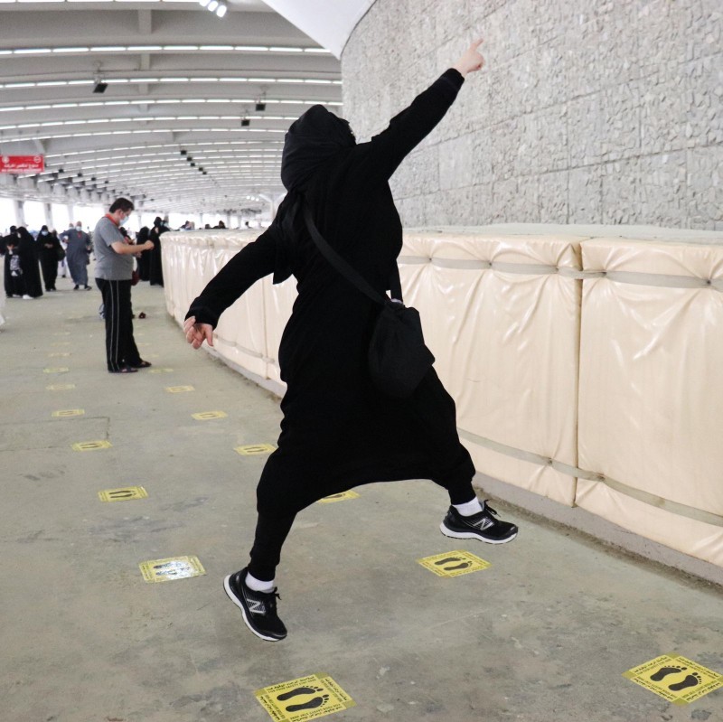 وذكرت أن الصعوبة في التقاط الصور كانت في وجود أقنعة الوقاية المعمول بها للحجاج. ما يعني اختفاء ملامح وتعابير الوجوه، وبالتالي لم تبق غير لغة الأعين، أو وضعيات معينة للحجاج أنفسهم، فكنت أقوم الفجر لأنتظر وراء العدسة مع وفود أول مجموعة حجاج إلى انتهاء اليوم بمناسكه، محملة بجميع معداتي بكاميراتي الثلاث وعدستي الثقيلة بغية توثيق أية لحظة، وليت العدسة بمقدورها ترجمة السلام والمحبة والشعور الروحاني الذي كان يحيط المكان بكل ما فيه، فهل أطمع بتصديقي إن قلت كنت أعيش التجربة أكثر من مرة؟