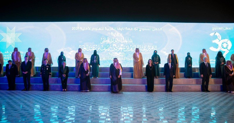 رعى وزير الداخلية رئيس المجلس الأعلى لجامعة نايف العربية للعلوم الأمنية الأمير عبد العزيز بن سعود بن نايف بن عبدالعزيز، مساء اليوم، الحفل السنوي للجامعة وتخريج 216 طالبًا وطالبة من الدفعة التاسعة والثلاثين، وذلك بمقر الجامعة في مدينة الرياض.