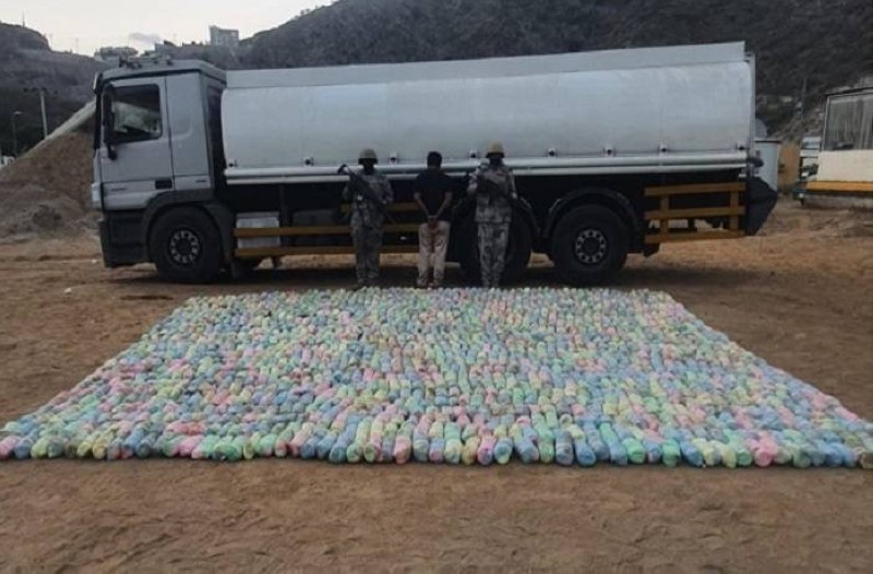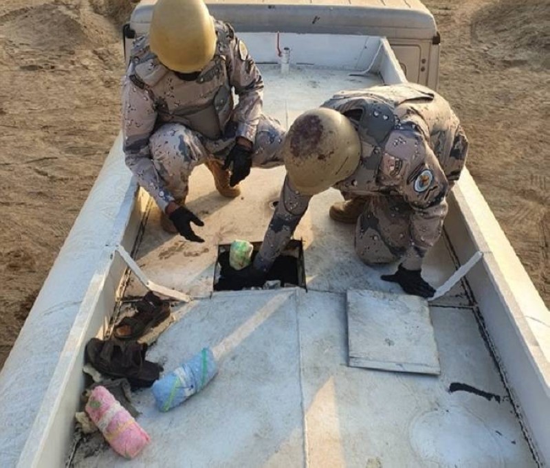 صرّح المتحدث باسم حرس الحدود العقيد مسفر القريني، بأنه وفي إطار المتابعة الأمنية المستمرة للنشاطات الإجرامية، التي تستهدف أمن المملكة وشبابها بالمخدرات، فقد تمكنت الدوريات البرية في مركز ضمد في قطاع الدائر بمنطقة جازان، من إحباط محاولة تهريب 825 كيلوغراماً من مادة القات المخدرة كانت مخبأة داخل صهريج يقوده مخالف لنظام أمن الحدود من الجنسية اليمنية، وجرى استكمال الإجراءات النظامية، وتسليم المضبوطات للجهة المعنية.