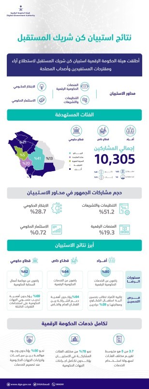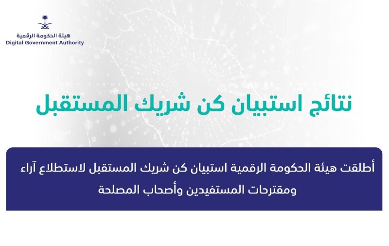 أعلنت هيئة الحكومة الرقمية نتائج استبيان «كن شريك المستقبل» الذي بلغ عدد المشاركين فيه أكثر من 10 آلاف من الأفراد والجهات الحكومية والقطاع الخاص، ويهدف إلى فتح قنوات التواصل مع المستفيدين من خدمات الحكومية الرقمية والاستماع إلى آرائهم ومقترحاتهم التطويرية.