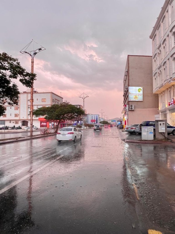 وانتشرت فرق الدفاع المدني والمرور في الشوارع والمواقع التي شهدت تجمعات لمياه الأمطار، كما شهدت منطقة الشفاء هطول الأمطار مصحوبة بزخات من البرد.