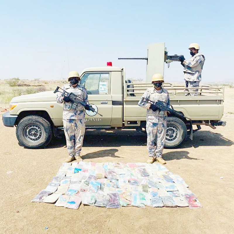 أحبطت الدوريات البرية لحرس الحدود محاولات عدة لتهريب 1.080 طن من مادة الحشيش المخدر، و269.512 قرص إمفيتامين مخدرا، و69.3 طن من مادة القات المخدر، والقبض على 87 متهما تورطوا في هذه العمليات.