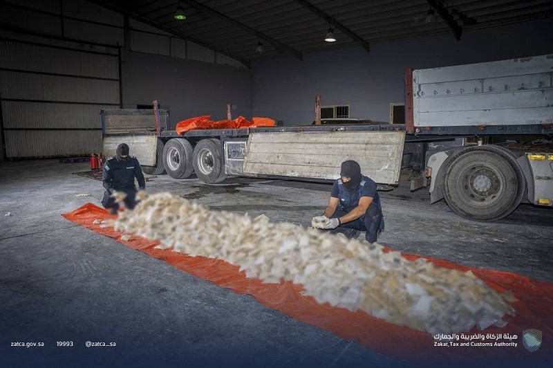 وأوضحت الهيئة أنه قَدِمت إلى المملكة شاحنة عبر منفذ الحديثة، وفي أثناء إجراء عملية الكشف والمعاينة عليها، عُثر على 2,302,325 حبة كبتاغون مُخبأة داخل تجويف في أرضية الشاحنة تم إعداده وتجهيزه لغرض التهريب، حيث جرى إخفاء الحبوب بطريقة فنية على امتداد أرضيتها.