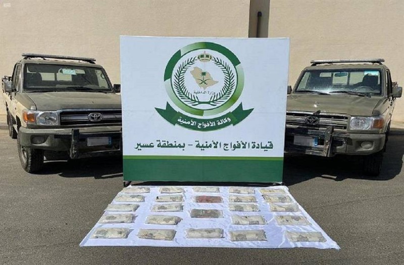 صرح مدير إدارة الإعلام والاتصال بوكالة وزارة الداخلية لشؤون الأفواج الأمنية العقيد أحمد الطويان، بأن دوريات الأفواج الأمنية بمنطقة عسير أحبطت تهريب 24 كيلوغراماً من مادة الحشيش المخدر، والقبض على مهربيها، وهم 4 مخالفين لنظام أمن الحدود من الجنسية الإثيوبية، وجرى استكمال الإجراءات النظامية الأولية بحقهم، وإحالتهم لجهة الاختصاص.