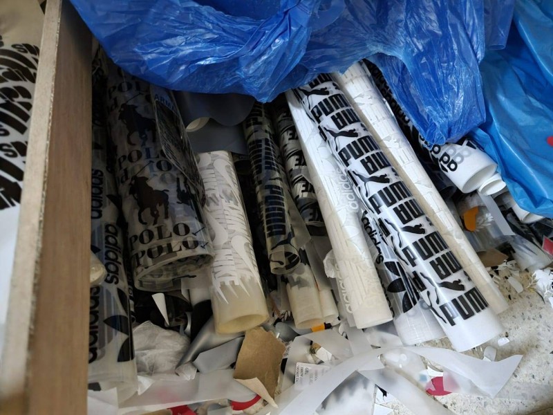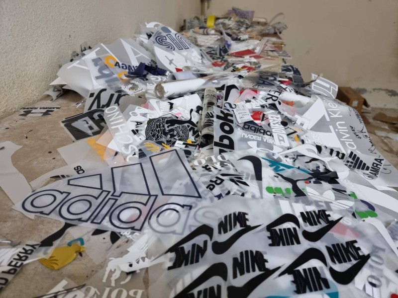 ضبطت أمانة محافظة جدة أكثر من 21 ألف استيكر مقلد لماركات ملابس عالمية، عثر عليها داخل شقة سكنية في منطقة باب شريف، كما تم ضبط 3500 قطعة رياضية مقلدة كان صانعوها يتأهبون لتسويقها. ورافقت «عكاظ» مراقبي الإدارة العامة لرصد ومعالجة الظواهر السلبية في أمانة جدة، خلال جولة ميدانية أسهمت في ضبط الموقع، وجرى رصد مركبات تقوم بنقل كميات من البضائع من عمارة سكنية قديمة في باب شريف وعند التثبت اتضح أنها شقة سكنية حولتها عمالة مخالفة وكرا لتقليد العلامات التجارية للملابس.