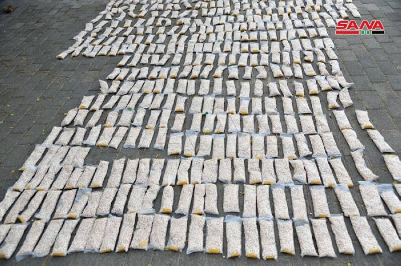 أعلنت السلطات السورية أن الجهات المختصة ضبطت نحو 525 كيلوغراما من حبوب الكبتاغون المخدرة ضمن شحنة معكرونة كانت معدة للتصدير إلى السعودية، وذلك ضمن متابعتها الأمنية الدقيقة ومكافحتها لعمليات نقل وتهريب المواد المخدرة.