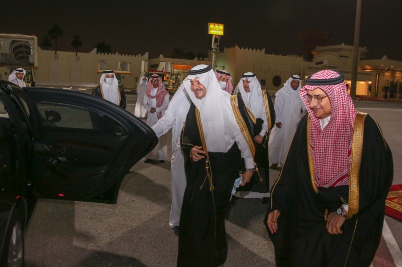 وكان في استقباله عند وصوله لمطار الدوحة الدولي وزير الشباب والرياضة صلاح بن غانم العلي وسفير خادم الحرمين الشريفين لدى دولة قطر الأمير منصور بن خالد بن فرحان.