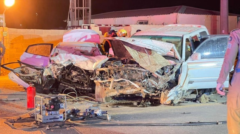 فيما باشرت الجهات المختصة حادث تصادم آخر وجهاً لوجه أول فجر اليوم الخميس بين مركبتين على طريق الجراد شرق بريدة أحد المركبات تقودها سيده، وقد نتج عن الحادث وفاة ٣ بينهم طفلتان وسيدة وإصابة طفله وفتاة.