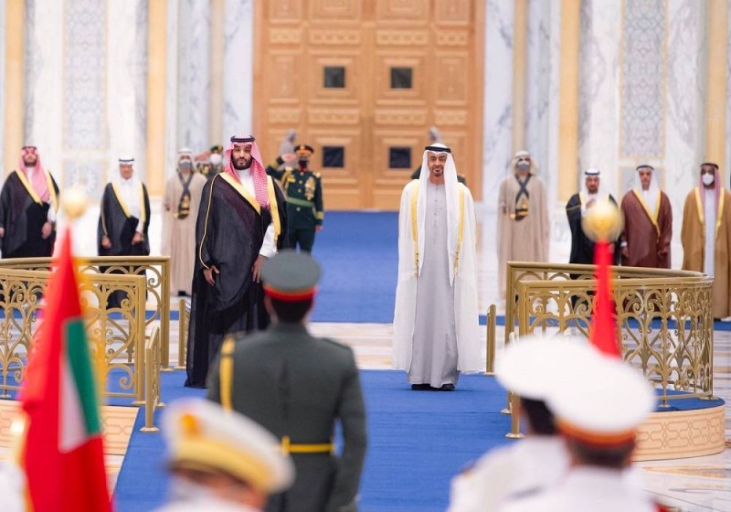 ثم استعرض حرس الشرف، وعزف السلامان الوطنيان للمملكة العربية السعودية ودولة الإمارات العربية المتحدة.