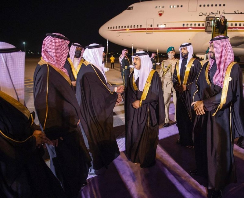 كما وصل ملك مملكة البحرين حمد بن عيسى آل خليفة، وكان في استقباله في الصالة الملكية بمطار الملك خالد الدولي، ولي العهد نائب رئيس مجلس الوزراء وزير الدفاع الأمير محمد بن سلمان بن عبد العزيز، الذي رحب به وبمرافقيه في السعودية.
