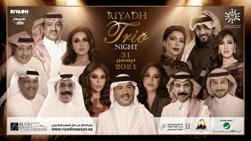 أشعلت تغريدة رئيس مجلس ادارة الهيئة العامة للترفيه المستشار تركي آل الشيخ، مواقع التواصل الاجتماعي، إذ تصدرت محرك البحث «قوقل» وأصبحت «ترند»، مزيحا من خلالها الستار عن اضخم حدث فني في الوطن العربي سيشهده موسم الرياض ليلة 31 ديسمبر 2021 ليكون اجمل بداية لعام 2022 ممثلا في حفل هو الأكبر والاضخم والابرز غنائيا بعنوان Riyadh Trio Night، تقدمه الهيئة العامة للترفيه، من تنظيم واشراف هرم شركات الانتاج روتانا للصوتيات والمرئيات.