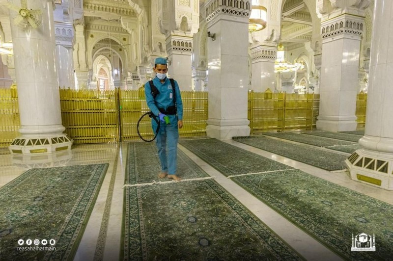 وبحسب وكيل الرئيس العام للخدمات والشؤون الميدانية بالرئاسة العامة لشؤون المسجد الحرام والمسجد النبوي محمد بن مصلح الجابري، رفعت الرئاسة مستوى جاهزيتها لصلاة الجمعة، بحزمة من الإجراءات الخدمية والميدانية والتشغيلية التي من شأنها توفير بيئة آمنة مطمئنة تعين زوار ومعتمري بيت الله الحرام من أداء مناسكهم في أجواء روحانية يحفها الخشوع والسكينة، ومن ذلك غسل كامل المسجد الحرام وتطهيره وتعقيمه، وفي كل عملية تطهير يُستهلك أكثر من (80 ألف) لتر من المطهرات، كما يتم تشغيل (100) فواحة معطرة داخل توسعة الملك فهد بأدواره وتعطير المسجد الحرام وساحاته بـ(1500) لتر بأجود أنواع المعطرات، ويتم فرش أكثر من ١٣ ألف سجاد في كامل المسجد الحرام كما يتم توزيع قرابة (3000) حاوية نفايات كبيرة وصغيرة داخل وخارج المسجد الحرام لرفع مستوى التطهير وعلى مدار الساعة وتطهير أكثر من (٣٠٠٠) دورة مياه. وأضاف الجابري أنه يُستخدم قرابة (٢٨) ألف لتر من المعقمات لتعقيم جميع الأسطح، إضافة إلى أكثر من (500) جهاز آلي لتعقيم الأيدي بخاصية الاستشعار و(20) جهاز بايوكير و(11) روبوت ذكي للتعقيم و(550) مضخة تعقيم يدوية. وفي مجال السقيا قال الجابري: نستعد لتوزيع أكثر من (١٠) الآف عبوة ماء زمزم لصلاة الجمعة يتم توفيرها على كافة مواقع المسجد الحرام وساحاته، وتأمين مصلى الجنائز والمكبرية بالأعداد الكافية من عبوات ماء زمزم ومتابعة توزيعها في صحن المطاف ومتابعة تعقيم الشنط وحافظات زمزم والعربات الخاصة بالمطاف، إضافة إلى أكثر من (٢٠٠٠) حافظة موزعة في أرجاء المسجد الحرام ليصل العدد الإجمالي للترات ماء زمزم أكثر من (٢٧٠) ألف لتر ماء ليوم الجمعة.
