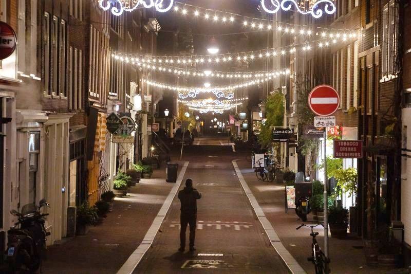 شخص وحيد في شارع مهجور وسط أمستردام. (وكالات)