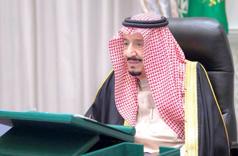 خادم الحرمين خلال ترؤسه جلسة مجلس الوزراء أمس. (واس)