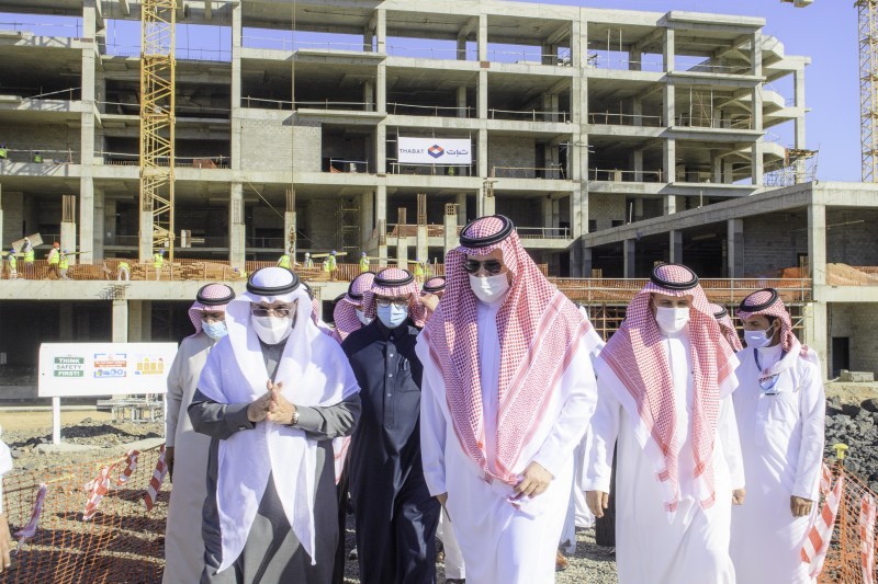 تفقد أمير منطقة المدينة المنورة رئيس مجلس هيئة تطوير المنطقة الأمير فيصل بن سلمان بن عبدالعزيز، اليوم (الثلاثاء)، مشروع مستشفى طيبة الجامعي، الذي استؤنفت أعماله الإنشائية أخيرا، بدعم من هيئة كفاءة الإنفاق والمشروعات الحكومية (إكسبرو)، وهيئة تطوير منطقة المدينة المنورة، ويجري تنفيذه على مساحة 150 ألف متر مربع، بطاقة تشغيلية تبلغ 513 سريرا، ضمن نطاق المدينة الطبية الجامعية على طريق الملك خالد (الدائري الثالث).