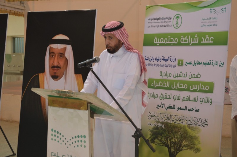 وفي إطار تعزيز التعاون المشترك وتعزيزا لهذه المبادرة تم توقيع عقد شراكة بين تعليم محايل ووزارة البيئة والمياه والزراعة ممثلة بفرع منطقة عسير، ثم أعلن رئيس بلدية محايل تقديم 3000 شتلة زراعية يتم توزيعها على مدارس تعليم محايل، ثم غرس محافظ محايل والضيوف 60 شتلة زراعية متنوعة في محيط المدرسة. وذكر مدير التعليم أن الهدف الوصول إلى 12 ألف شتلة زراعية في كافة مدارس ومكاتب التعليم، وأشار إلى أن المبادرة انطلقت بالتزامن في كافة مكاتب التعليم برعاية المحافظين ورؤساء المراكز.
