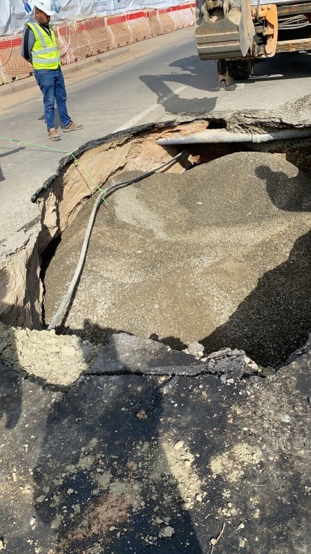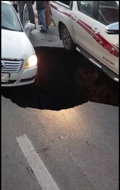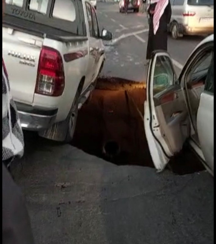 وتعمل شركة المياه الوطنية على إصلاح خط الصرف وسيتم فتح الطريق بعد إعادة إصلاح الهبوط والسفلتة.