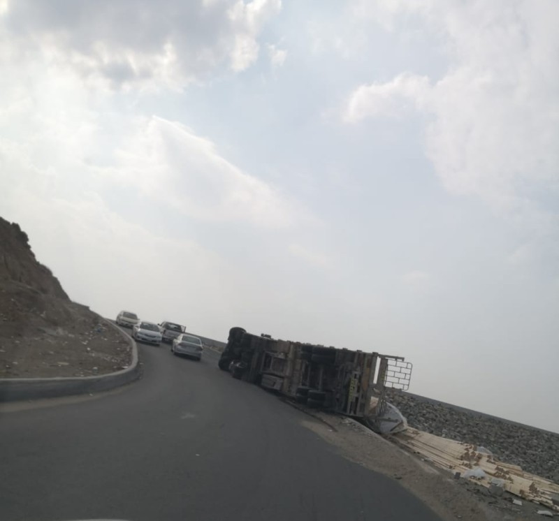 وتسبب الحادث كذلك في تناثر حمولة الأخشاب في حوض السد المجاور للطريق وتراكم المركبات على الطريق الضيق، نظراً لاستقرار الشاحنة المتضررة على أحد جوانبه، فيما باشر رجال المرور الواقعة.