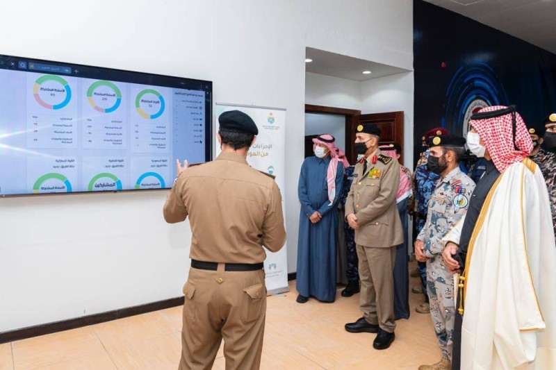 عقب ذلك، تفقد مساعد وزير الداخلية لشؤون العمليات الفريق أول سعيد بن عبدالله القحطاني مركز القيادة والسيطرة في مقر التمرين وتعرف على الخلايا الأمنية المشاركة والفرضيات كافة.