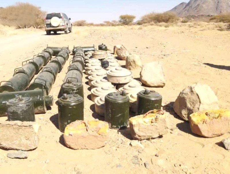 نزع مشروع مركز الملك سلمان للإغاثة والأعمال الإنسانية (مسام) لتطهير الأراضي اليمنية من الألغام، خلال الأسبوع الثاني من شهر يناير الجاري، 4739 لغماً زرعتها مليشيا الحوثي في مختلف مناطق اليمن؛ منها 26 لغماً مضاداً للأفراد، و2389 لغماً مضاداً للدبابات، و2230 ذخيرة غير متفجرة، و94 عبوة ناسفة.