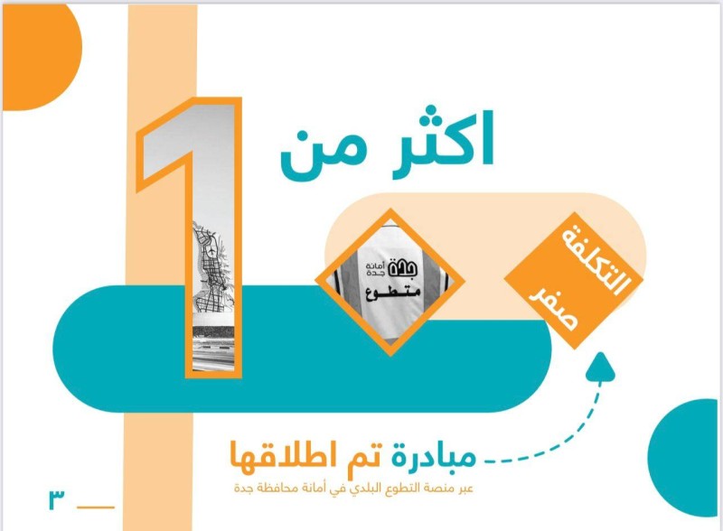 نفذت أمانة محافظة جدة خلال العام الماضي 2021، 100 مبادرة وبرنامج تطوعي، بمشاركة المتطوعين في عدد من المجالات المتنوعة، بالشراكة المجتمعية مع الجهات الحكومية والمؤسسات غير الربحية، بهدف تعزيز جودة الحياة لتحقيق مستهدفات حملة «المليون متطوع» ضمن رؤية 2030.
