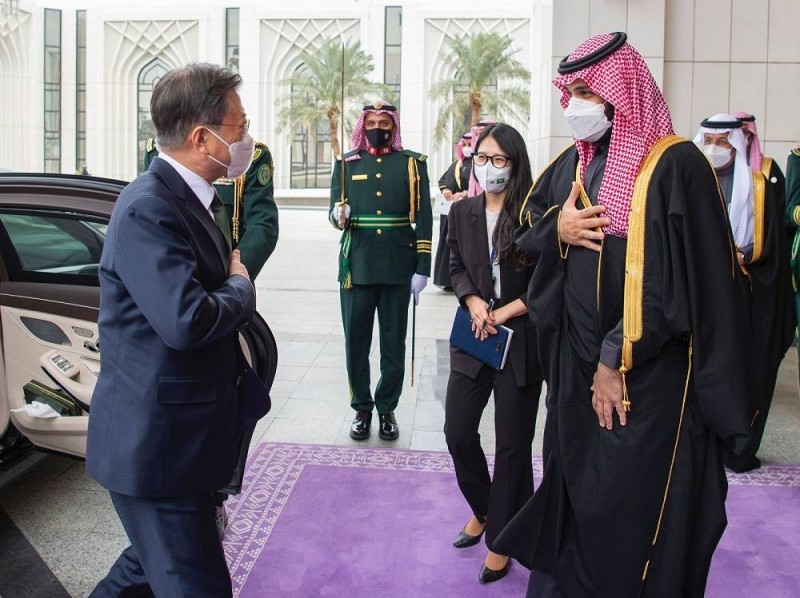 فيما حضرها من الجانب الكوري، وزير الخارجية إيوي يونغ تشونغ، ووزير التجارة والصناعة والطاقة سونغ ووك مون، وكبير موظفي مكتب الرئيس للسياسات هو سيونغ لي، وسفير جمهورية كوريا لدى السعودية جون يونغ بارك، ونائب مدير الأمن القومي هيونغ جين كيم، وسكرتير الرئيس للسياسات الخارجية يونغ هيون كيم.