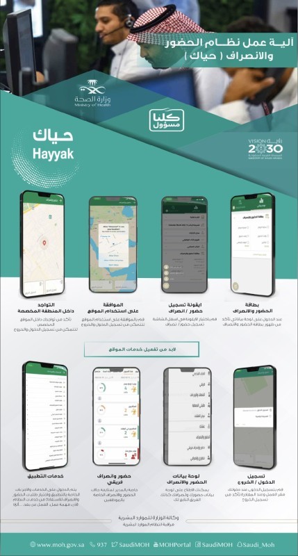 وطبقا لمعلومات «عكاظ»، فإن نظام الحضور والانصراف الجديد يتم عبر تطبيق «مديري» الخاص بمنسوبي وزارة الصحة عبر أيقونة جديدة تمت إضافتها باسم «حياك»، وستكون خاصة بتسجيل الحضور حال وصول موظف الصحة إلى المنشأة، مع تسجيل الانصراف، الأمر الذي دعا وزارة الصحة إلى مخاطبة مديرياتها لتحديد «GPS» حتى يتم تسجيل الحضور والانصراف للموظف من نفس مكان المنشأة.