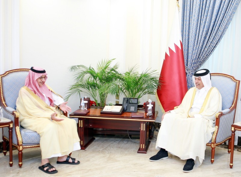اجتمع رئيس مجلس الشورى بدولة قطر حسن الغانم أمس بسفير خادم الحرمين الشريفين لدى قطر الأمير منصور بن خالد بن فرحان.
