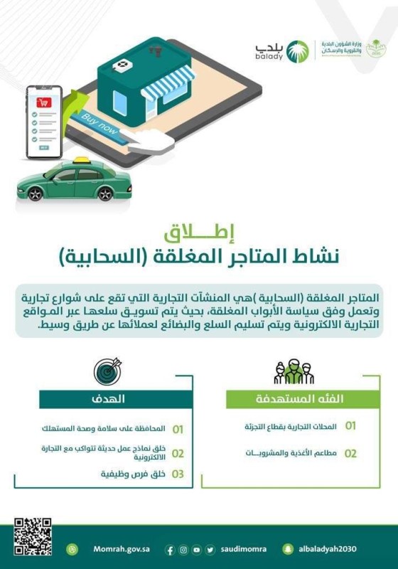 يذكر أن الفئات المستهدفة هي المحلات التجارية بقطاع التجزئة ومطاعم الأغذية والمشروبات وتهدف الى المحافظة على سلامة وصحة المستهلك وخلق نماذج عمل حديثة تتواكب مع التجارة الإلكترونية وخلق فرص وظيفية.