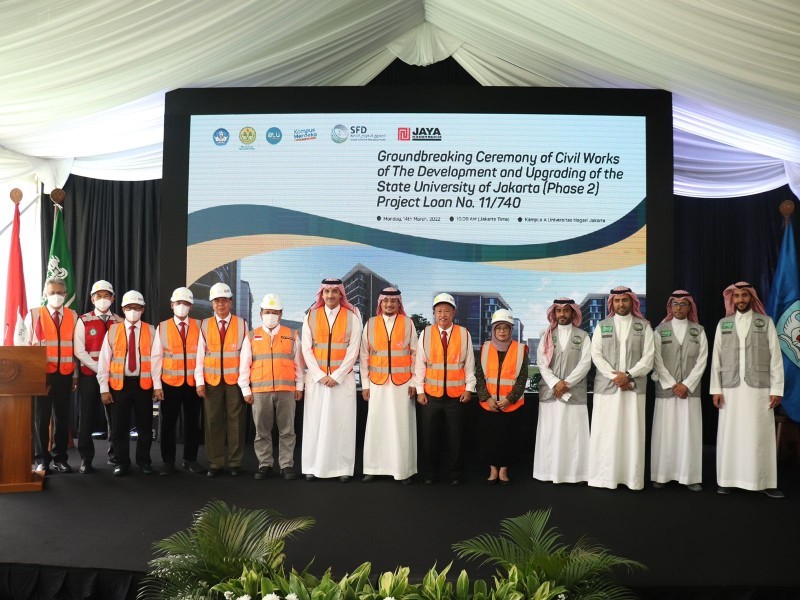 وخلال حفل أقيم في جامعة ولاية جاكرتا، وضع الرئيس التنفيذي حجر الأساس لمشروع تطوير الجامعة، بحضور كل من نائب سفير السعودية في إندونيسيا يحيى القحطاني، والأمين العام لوزارة التربية والثقافة والبحوث والتكنولوجيا الدكتورة سوهارتي، ورئيس جامعة ولاية جاكرتا الدكتور قمر الدين، ومدير التعاون المتعدد الأطراف للشؤون المالية في هيئة تخطيط التنمية الوطنية، ونواب رئيس الجامعة وعمداء الكليات والموظفين.