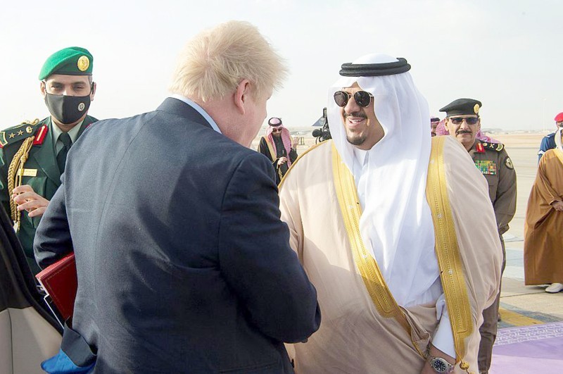 نائب أمير الرياض مودعاً رئيس الوزراء البريطاني جونسون.