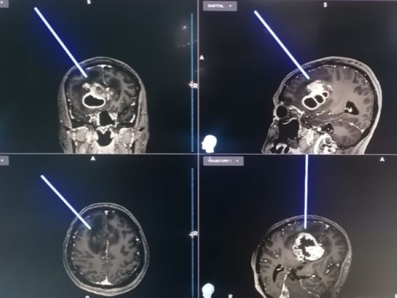 وبعد إجراء الفحوصات المبدئية تبين وجود ورم دماغي، حيث تم تنويم المريضة في العناية المركزة، وبعد إكمال الفحوصات بأشعة الرنين المغناطيسي تبين وجود الورم في الجزء الأمامي الأيسر من الدماغ.
