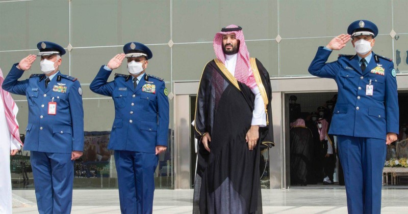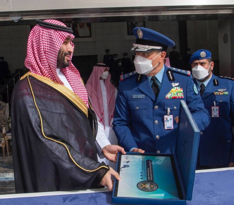 وكان في استقبال ولي العهد لدى وصوله مقر الكلية في الرياض، رئيس هيئة الأركان العامة الفريق الأول الركن فياض بن حامد الرويلي، وقائد القوات الجوية الملكية السعودية الفريق الركن تركي بن بندر بن عبدالعزيز، وقائد كلية الملك فيصل الجوية اللواء الطيار الركن حازم الغشيان.