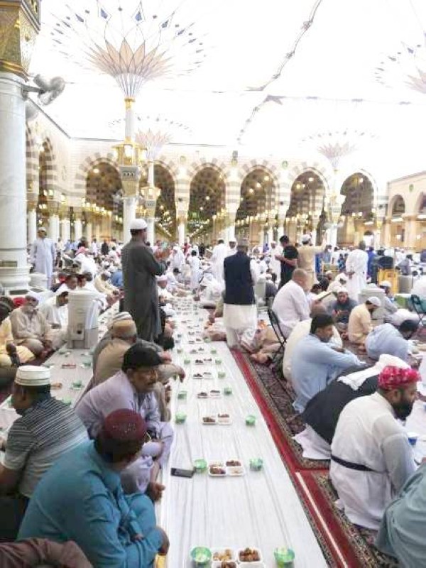 زائرون ومصلون بالمسجد النبوي على مائدة الإفطار. (ارشيفية)