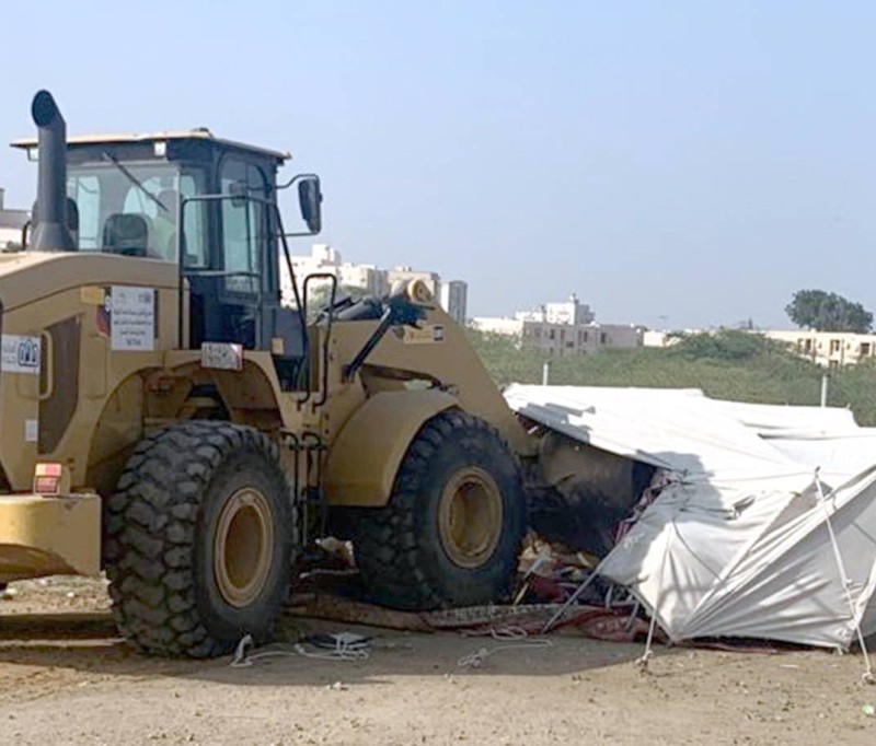 معدات الأمانة تزيل الحظائر والخيام المخالفة. (موقع الأمانة)