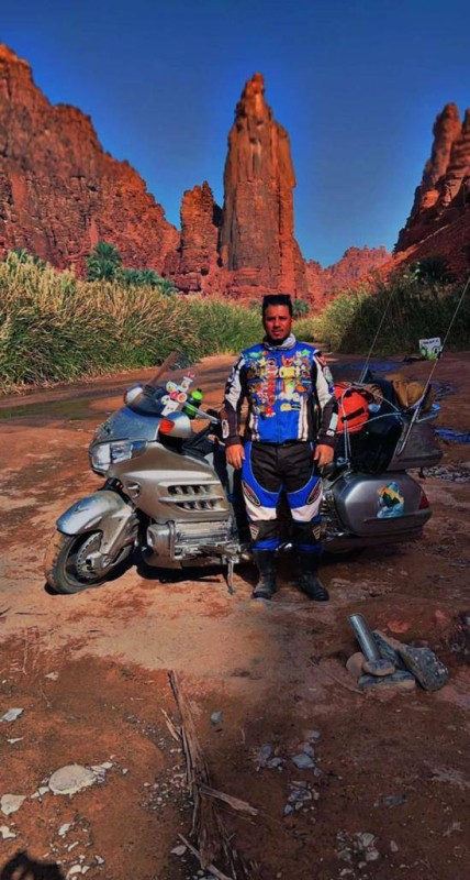 •• انطلقت في رحلتي على دراجة نارية (دباب) لقطع مسافة 11500 كم، بدأت من أبها ثم نجران فالرياض، الخرج، حرض، الامارات، قطر، سلوى، الهفوف، الخبر، الدمام، البحرين، الجبيل، الكويت، حفر الباطن، الزلفي، القصيم، حائل، الجوف، سكاكا، طبرجل، القريات، الأردن، البحر الميت، عقبة الأردن، حقل، تبوك، الديسة، العلا، خيبر، المدينة المنورة، مكة المكرمة، جدة، الليث، القنفذة، الدرب، بيش، صبيا، ضمد، ابو عريش، فيفا، جازان، وأخيراً أبها.