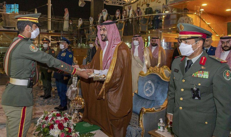 وكان في استقبال نائب وزير الدفاع لدى وصوله مقر الكلية، رئيس هيئة الأركان العامة الفريق الأول الركن فياض بن حامد الرويلي، وقائد قوات الدفاع الجوي الفريق الركن مزيد بن سليمان العمرو، وقائد منطقة الطائف اللواء الركن محمد بن مشبب القحطاني.